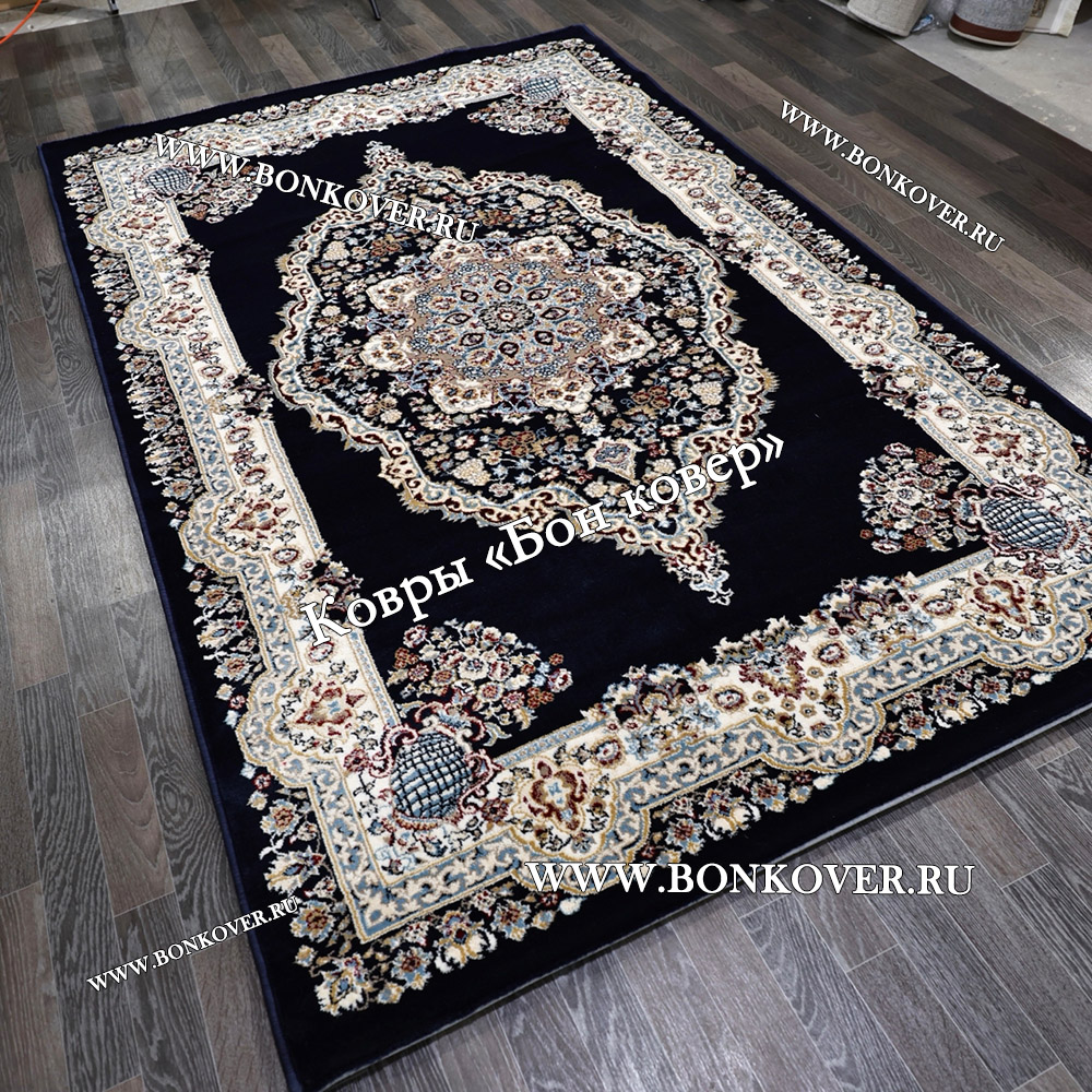 Турецкий Ковер Медальон дизайн 72 Синий станет шикарным преображением жилого помещения, подчеркивая высокий статус семьи владельца.