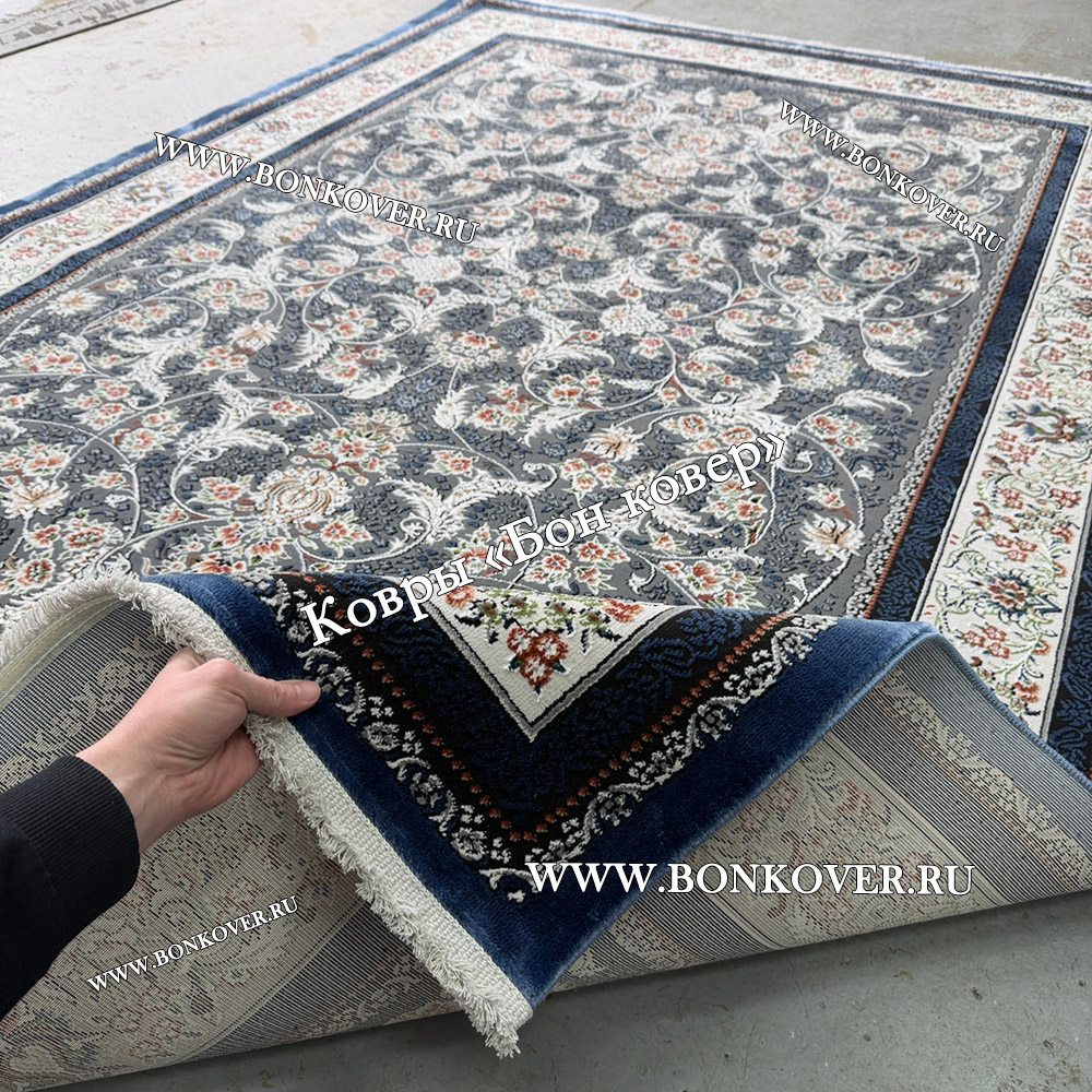 Импозантный Турецкий Ковер Для Гостиной Дизайн 30568 Синий наполняет интерьер комнаты теплом и уютом, гармонично сочетает в себе изящество и красоту. Он выполнен из экологически чистого сырья, прочный и долговечный.